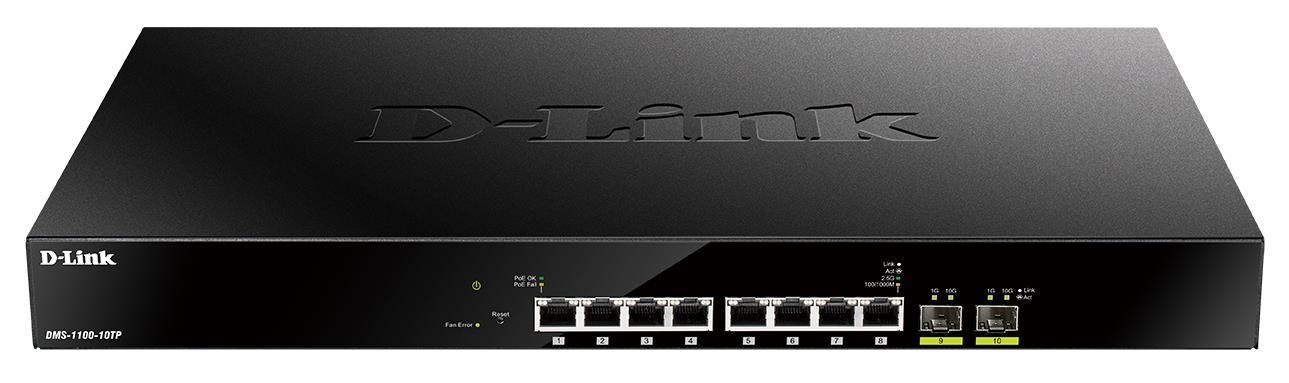 D-Link DMS-1100-10TP 10-Port Multi-Gigabit PoE Smart Managed Switch, 8x 2,5G PoE, 2x SFP+