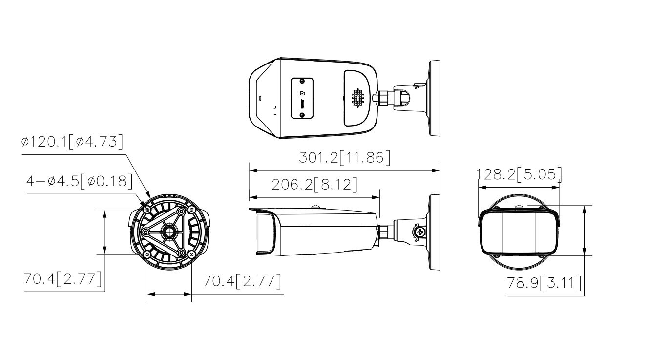 Výstupy max. 8 MP (4096 × 1800)@25 fps. Kodek H.265, vysoká míra komprese, velmi nízká přenosová rychlost. Vestavěné teplé světlo a maximální vzdálenost osvětlení je 40 m. ROI, SMART H.264+/H.265+, AI H.264/H.265, flexibilní kódování, použitelné pro různé šířky pásma a úložná prostředí. WDR, 3D NR, HLC, BLC, digitální vodoznak, použitelné pro různé monitorovací scény. Detekce abnormalit: Detekce pohybu, manipulace s videem, změna scény, detekce zvuku, žádná karta SD, plná karta SD, chyba karty SD, odpojení sítě, konflikt IP, nelegální přístup a detekce napětí. Alarm: 1 vstup, 1 výstup; zvuk: 1 vstup, 1 výstup; podporuje max. 512 G karty Micro SD, vestavěný mikrofon a reproduktor, podpora obousměrného hovoru. Napájení 12 VDC/PoE. Krytí IP67. Inteligentní monitorování: Narušení, tripwire, tepelná mapa a počítání osob. EPTZ: Zvětšení a sledování cílů inteligentních poplachů. SMD 4.0. Široký úhel záběru 180°..