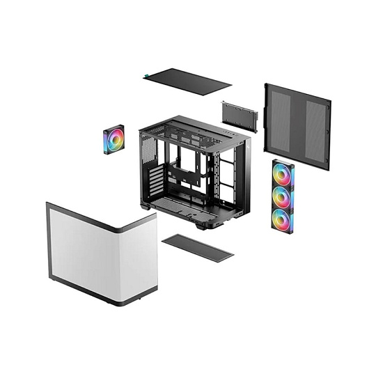 CG530U 4F je panoramatická počítačová skříň se zakřiveným sklem, postavená na dvoukomorovém designu. Je předinstalovaná čtyřmi ARGB ventilátory a je připravena zajistit efektivní proudění vzduchu i osvětlení.