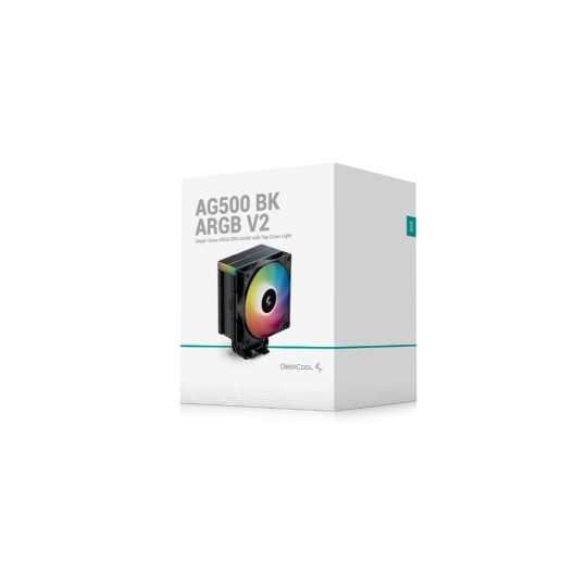 DeepCool AG500 BK ARGB V2 je celočerný jedno-věžový chladič CPU zaměřený na vysokou výkonnostní účinnost, který se pyšní pěti tepelnými trubicemi zabalenými v husté věži chladiče pro optimální odvod tepla a spárovanými s jemně vyladěným 120mm ARGB PWM ventilátorem pro výkonné chlazení.