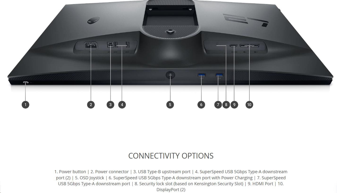 | FPS Mode, RTS Mode, Mercury free, arsenic-free glass, Sports Mode, RPG Mode, Game Enhance Mode, Low Blue Light technology, Dell ComfortView Plus, flicker-free panel, console mode, 3 customizable game modes, AlienVision |