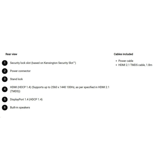 • 1 HDMI port/s (HDCP 1.4) (Supports up to 2560 x 1440, 100 Hz as specified in HDMI 1.4)