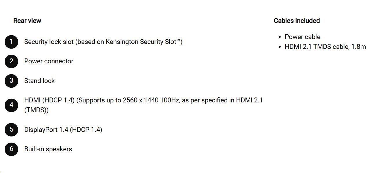 • 1 HDMI port/s (HDCP 1.4) (Supports up to 2560 x 1440, 100 Hz as specified in HDMI 1.4)