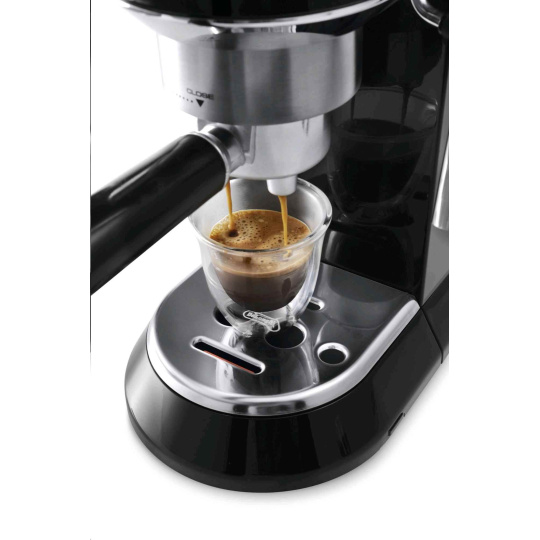 Vytvořte si ve vaší kuchyni malou kavárnu! Moderní design, zaoblené tvary a nevšední velikost pouhých 14,9 cm na šířku – to vše vás nadchne u elegantního Espressa DeLonghi. Díky velmi praktickým rozměrům si přístroj budete moci ponechat na kuchyňské lince a mít ho po ruce vždy, když dostanete chuť na šálek kávy. Celkový vzhled je navíc okořeněn kovovým tělem přístroje, prvky z chromu a profesionálním pákovým držákem na filtr. Jednoduše stvořený do každé kuchyně.
