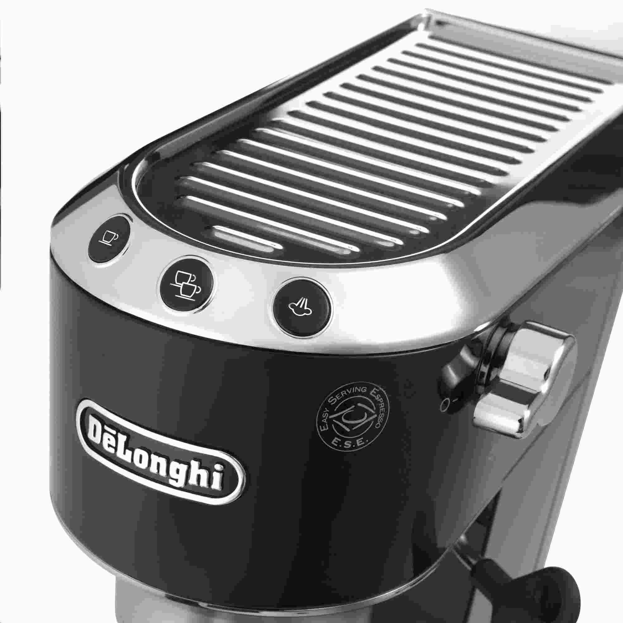 Vytvořte si ve vaší kuchyni malou kavárnu! Moderní design, zaoblené tvary a nevšední velikost pouhých 14,9 cm na šířku – to vše vás nadchne u elegantního Espressa DeLonghi. Díky velmi praktickým rozměrům si přístroj budete moci ponechat na kuchyňské lince a mít ho po ruce vždy, když dostanete chuť na šálek kávy. Celkový vzhled je navíc okořeněn kovovým tělem přístroje, prvky z chromu a profesionálním pákovým držákem na filtr. Jednoduše stvořený do každé kuchyně.