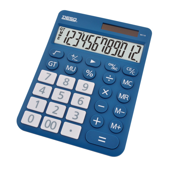 Extra velká stolní kalkulačka New Generation v moderním dvoubarevném designu, která kombinuje praktické funkce s přehledným rozložením kláves. ? Velký a šikmo umístěný LCD displej – snadná čitelnost z jakéhokoliv úhlu ? Velká tlačítka – snadné a pohodlné ovládání ? Dvojí napájení – solární panel + baterie ? Zobrazení aktuální operace na displeji – přehledná práce s funkcemi ? 4tlačítková paměť – efektivní výpočty ? Funkce pro obchodní výpočty: MU-GT-Backspace-00 ? Gumové nožky – zajišťují stabilitu na stole New Generation kalkulačky jsou dostupné v jednobarevném i dvoubarevném designu, což je ideální pro ty, kteří chtějí přidat trochu barev na svůj pracovní stůl. Všechny modely jsou vybaveny automatickým vypnutím, které šetří energii..