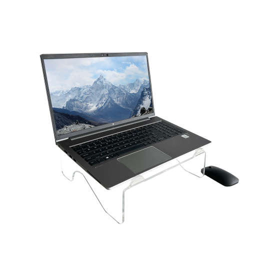 Stojan na notebook vyrobený z vysoce kvalitního průhledného akrylu v moderním minimalistickém designu. Jeho elegantní a jednoduchý design zajišťuje stabilitu bez rušivých prvků. ? Vysoce kvalitní 6 mm čirý akryl ? Platforma se sklonem 5 ° pro optimální komfort sledování ? Úložný prostor (max. 290 mm široký) pod stojanem, ideální pro dokumenty nebo klávesnici ? Robustní konstrukce s nosností až 15 kg ? Pogumované nožky pro stabilitu a ochranu pracovní plochy S DESQ stojanem na notebook nastavíte svůj displej do ideální výšky, což podporuje zdravé ergonomické držení těla a pomáhá předcházet bolestem zad, krku a očí..
