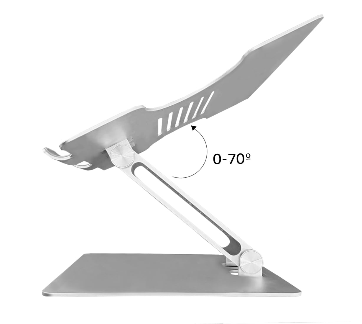 Plně nastavitelný stojan na notebook umožňuje nastavit váš notebook do jakékoliv výšky a úhlu pro ergonomicky správné držení těla. Celý je vyroben z vysoce kvalitní hliníkové slitiny a navržen v moderním minimalistickém designu. ? Plně a snadno nastavitelný podle vašich potřeb ? Zvedá obrazovku až o 28 cm pro optimální výšku ? Platforma nastavitelná až do úhlu 70 ° pro ideální pozorovací úhel ? Lehká konstrukce a skládací design pro snadné přenášení ? Výřezy v konstrukci pro lepší proudění vzduchu a chlazení notebooku ? Pevná a odolná hliníková slitina ? Silikonové podložky a nožky pro stabilitu a ochranu povrchu stolu S DESQ stojanem na notebook nastavíte displej do ideální výšky, což podporuje zdravé a ergonomické držení těla a pomáhá předcházet bolestem zad, krku a únavě očí..