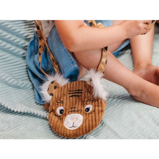 Dětská kabelka v podobě roztomilého tygra je malým zavazadlem, do kterého si děti uloží vše potřebné na pobyt venku, na výlet i na dovolenou. Kabelka pro děti má nastavitelný ramenní popruh a zapínání na zip..