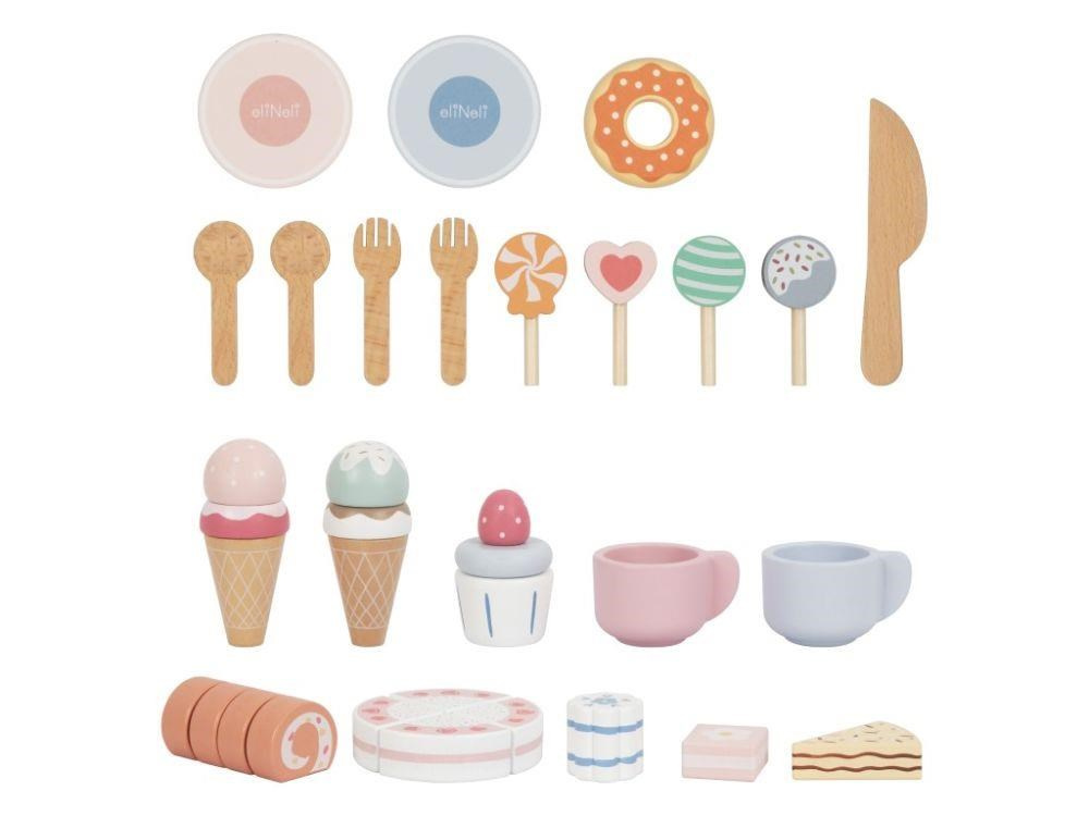 Čajový servis spolu s krájecím dortem a dalšími lahodně vypadajícími dobrotami, vše uložené v praktickém boxu, potěší každé dítko. S boxem 3v1 je uspořádání čajového dýchánku nebo posezení u kávy hračkou a velkou zábavou. Obsah boxu je skvělým doplňkem k dětské kuchyňce nebo obchůdku..