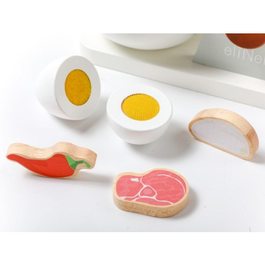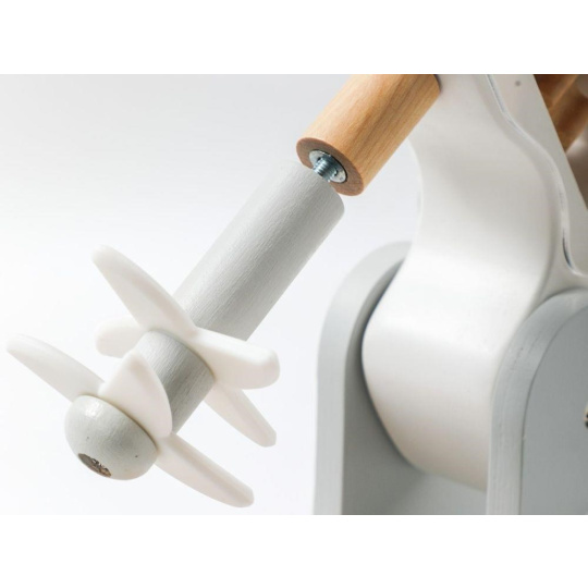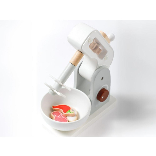 Dřevěný dětský mixér v moderní barevné kombinaci, v setu s dřevěným příslušenstvím, je edukativní hračkou, která umožní dětem vyzkoušet si práci s kuchyňským robotem bezpečným dětským způsobem. Otáčení páčky v horní části mixéru uvede mixér do chodu a tím dodává hračce reálný nádech. Dětský mixér s mísou, dřevěnými ingrediencemi a potravinami, krájecím vejcem a výměnnými nástavci nesmí chybět v žádné dětské kuchyňce..