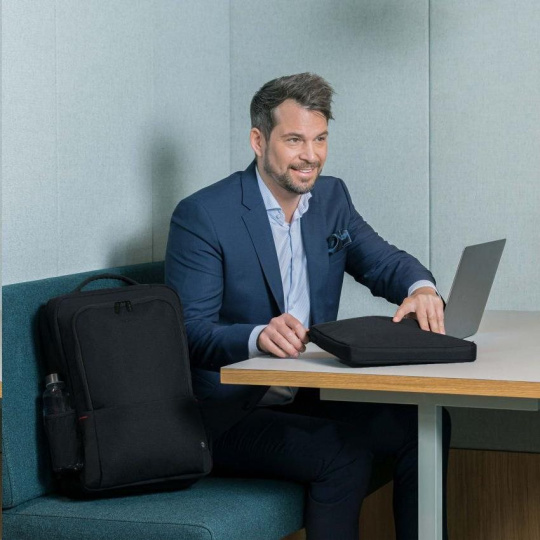 The compact Plus BASE backpack offers ideal protection for laptops between 13 and 15.6" thanks to its high-density foam (HDF) padding. The case fully protects your device and the elastic strap also secures it within its compartment. The spacious main section is divided so that documents and accessories can be stored separately. The front pocket has practical smaller compartments so you can organise smaller items like your smartphone, pens or chargers. You can safely store your passport, wallet or other valuables in the hidden zipped compartment on the back of the case. There is space for your water bottle or umbrella in the easily accessible mesh side pockets. You can therefore ensure that everything you need is always to hand. The backpack's ergonomic padding makes it comfortable to wear on your back and the shoulder straps can also be adjusted for further comfort. The Eco Backpack Plus BASE is therefore perfect for you if you are always on the go and want to support the recycling of PET bottles with an eco-friendly bag.
