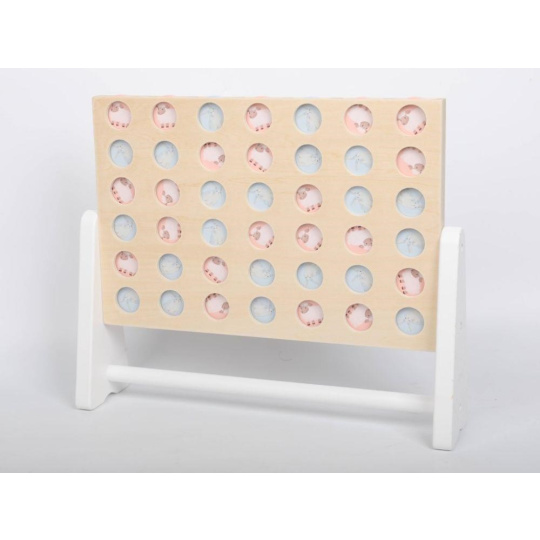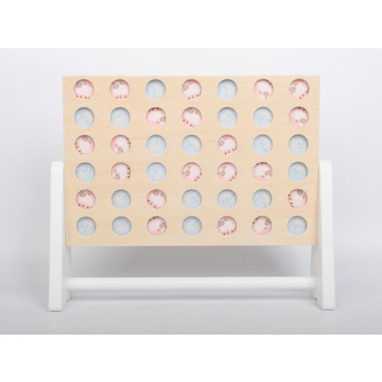 Dřevěné piškvorky v podobě dřevěného stojanu s barevnými ilustrovanými kolečky zavedou děti na farmu. Místo křížků a koleček si vyberete roztomilou ovečku nebo králíčka a hra může začít. Hraní piškvorek je jednoduchou hrou, která zdokonalí dětské dovednosti, logické a strategické myšlení, probouzí přirozenou dětskou soutěživost, učí děti soustředit se a trpělivosti, vyhrávat i prohrávat..