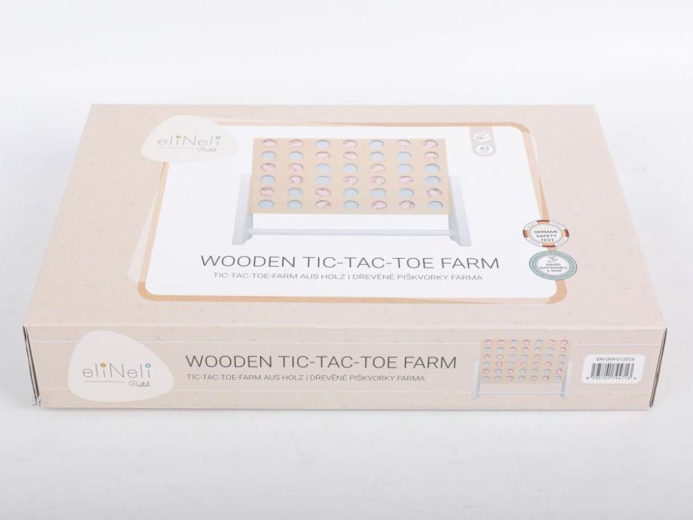 Dřevěné piškvorky v podobě dřevěného stojanu s barevnými ilustrovanými kolečky zavedou děti na farmu. Místo křížků a koleček si vyberete roztomilou ovečku nebo králíčka a hra může začít. Hraní piškvorek je jednoduchou hrou, která zdokonalí dětské dovednosti, logické a strategické myšlení, probouzí přirozenou dětskou soutěživost, učí děti soustředit se a trpělivosti, vyhrávat i prohrávat..