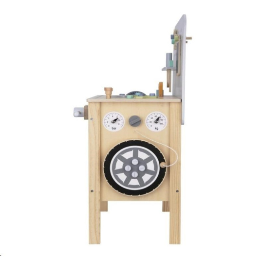 - Kompresor - tento zábavný doplněk umožní dětem vžít se do role automechanika, nasadit kolo na ponk, hrát si na to, že kolo dofukuje a opět kolo z ponku sundat.