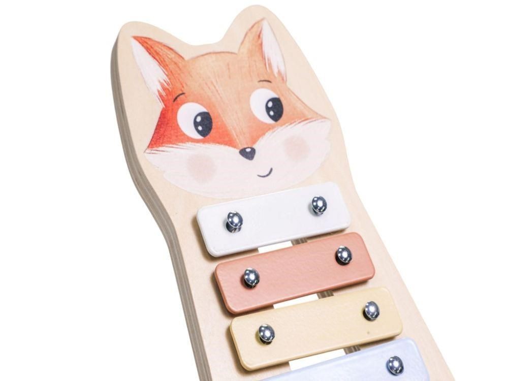 Roztomilý dřevěný xylofon s motivem lišky okouzlí děti jemnými pastelovými barvami. Kovové destičky na liščím bříšku se při úderech dřevěnou paličkou (součástí balení jsou 2 paličky) rozezní a přenesou malé hudebníky do světa tónů a barev hravou a zábavnou formou.