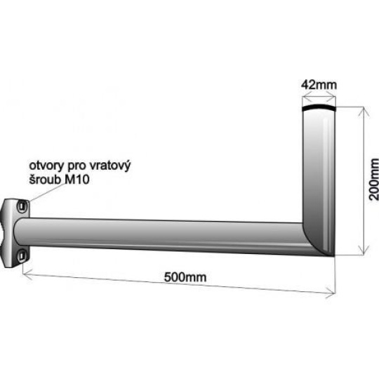Držák vhodný k připevnění na balkónové zábradlí nebo vodorovnou trubku, pro uchycení satelitních parabol a větších antén.| Technické specifikace: | |