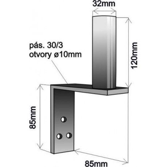 Základna: pásek 85x30x3mm, uchycení ve třech bodech