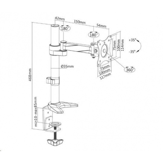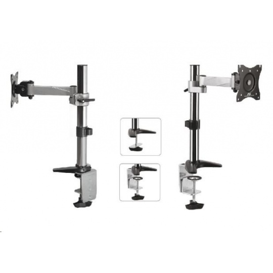 Držák monitoru na stůl Fiber Mounts MC717 Stolní držák na monitor 15÷30", otočný, sklopný, výškové nastavení, funkce pivot Velmi pěkný, kvalitní a hlavně cenově dostupný stolní držák pro zavěšení monitorů s úhlopříčkou 15÷30 palců. Plná nastavitelnost polohy obrazovky - otáčení do stran, náklon, výšková regulace, horizontální nebo vertikální otočení obrazovky, korekce roviny. Stolní držák MC717 podporuje VESA standard 75x75 a 100x100, doporučené maximální zatížení je 8kg. Součástí balení je montážní materiál a 2 typy uchycení na stolovou desku - na krajní hranu stolu nebo skrz stolovou desku kdekoliv do prostoru. Držák je výborné kvality a opravdu pěkného designu. Držák na monitor do kanceláře, domácnosti, firmy nebo do škol -Fiber Mounts MC717 - otočný, sklopný, výškově nastavitelný, funkce pivot, TOP kvalita, design, vynikající cena za stolní držák Technické údaje: nosnost 8kg podpora VESA standardu 75x75 a 100x100 doporučujeme na monitor s úhlopříčkou 15" až 30" otáčení do stran +180° / -180° náklon +35° / -35° horizontální nebo vertikální otočení obrazovky monitoru - funkce pivot korekce roviny maximální odsazení monitoru od nosníku 246mm 2 typy uchycení na stůl - na kraj stolu / skrz stůl kdekoli do prostoru minimální síla stolové desky 10mm maximální síla stolové desky 85mm průměr nosníku 35mm výška nosníku od stolové desky 400mm nastavitelná výška ramene vynikající kvalita snadné nastavení pozice obrazovky monitoru materiál hliník barva stříbrná + chrom záruka 3 roky.