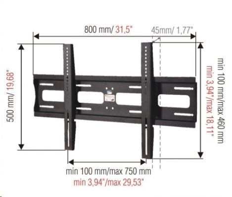Technické údaje: nosnost 80kg VESA standard 100x100 - 720x460 doporučujeme na televizory 37" až 60" vzdálenost Tv od zdi 45mm vyrobeno z kvalitní silnostěnné ocely snadná instalace profesionální kvalita certifikovaný držák tv barevné provedení černé nebo stříbrné záruka 10 let DRŽÁK PODOPORUJE VESA STANDARDY: VESA 100x100 VESA 200x100 VESA 200x200 VESA 300x200 VESA 300x300 VESA 400x200 VESA 400x300 VESA 400x400 VESA 600x400 všechny atypické rozměry VESA standartů až do rozměrů 700x460mm.
