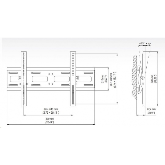 Technické údaje: doporučená velikost TV 42" - 63" nosnost TV držáku 80kg vzdálenost od zdi 77mm náklon Tv +6,5° / -12° VESA standart 100x100 až 740x460mm profesionální konstrukce zajištění TV proti pádu certifikovaný náklopný držák jednoduchá instalace záruka 10 let DRŽÁK PODOPORUJE VESA STANDARDY: VESA 100x100 VESA 200x100 VESA 200x200 VESA 300x200 VESA 300x300 VESA 400x200 VESA 400x300 VESA 400x400 VESA 600x400 všechny atypické rozměry VESA standartů až do rozměrů 700x460mm.