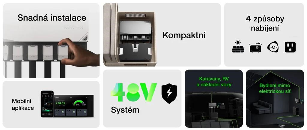 V zařízení Power Hub najdete dva MPPT regulátory, jeden nabíječ akumulátorů s MPPT, jeden DC-DC měnič a invertorový nabíječ. To ve výsledku znamená mnohem méně potřebných součástek a kabeláže. Vše je integrováno do boxu s velmi povedeným designem, takže v interiéru Power Hub navíc i stylově vypadá.