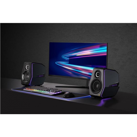 V těle těchto herních reproduktorů jsou zapuštěny čtyři 360° prostorové světelné pásy. Můžete si vybrat z 11 režimů okolního osvětlení.