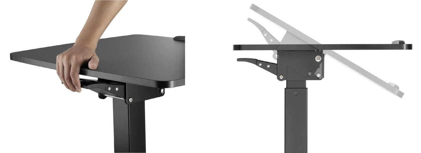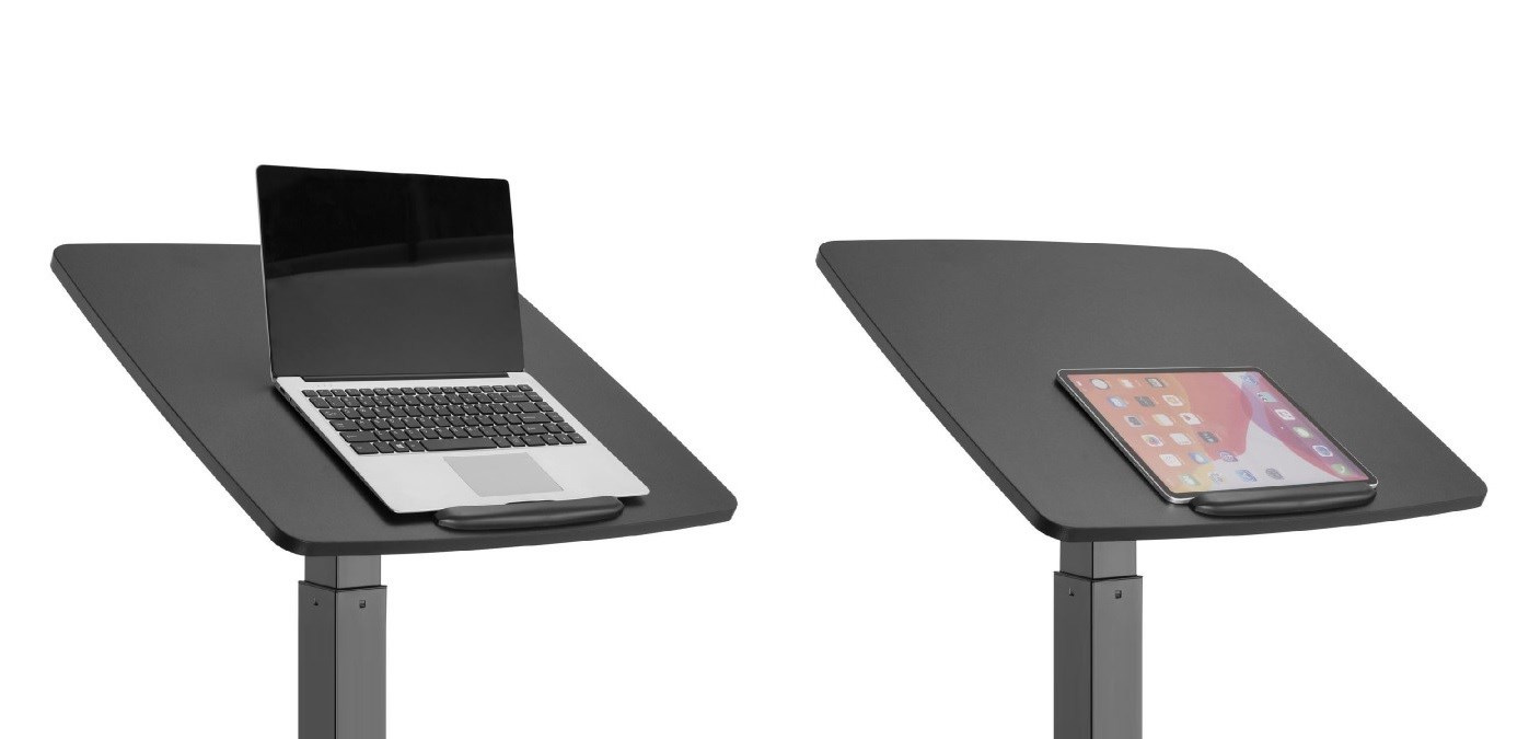 Elektricky výškově nastavitelný 76-113cm stolek na notebook, laptop nebo projektor, možnost naklápění 0° až 30°, rozměr desky 600*520mm, nosnost 8kg, pojezdová kolečka s brzdou.... více