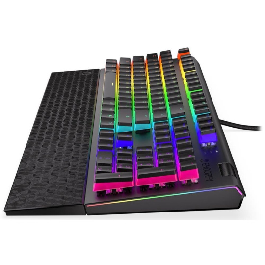 Plnohodnotná mechanická klávesnice pro každého vášnivého hráče. Díky spínačům Kailh Blue nabízí výbornou odezvu a výdrž přes 50 milionů stisků. Konstrukce z hliníku vykazuje jen tu nejvyšší možnou odolnost a stabilitu. Špičkové pohodlí zajistí odnímatelná opěrka dlaní. Klávesy jsou RGB podsvícené a nabízí možnost vlastního nastavení. Klávesy jsou navíc také plně programovatelné, díky tomu lze klávesnici individualizovat přesně podle potřeb hráče a hrané hry. Klávesnice disponuje také otočným ovladačem hlasitosti. Samozřejmě nechybí ani funkce Anti-Ghosting a N-Key rollover. Připojení je realizováno skrze odnímatelný USB kabel.