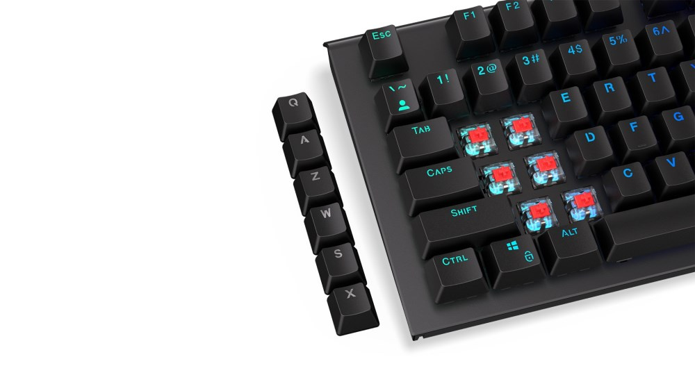 Klasický design a odolnost pro nadcházející roky. Tým 124 černých kláves PBT je připraven vyhrát. A klikat v tichosti – protože spolu s krytkami kláves vám dáváme gumové O-kroužky, které tlumí zvuky klávesnice, jako by žádný zítřek nebyl. Něco nám říká, že vaši spolubydlící vám za to poděkují.