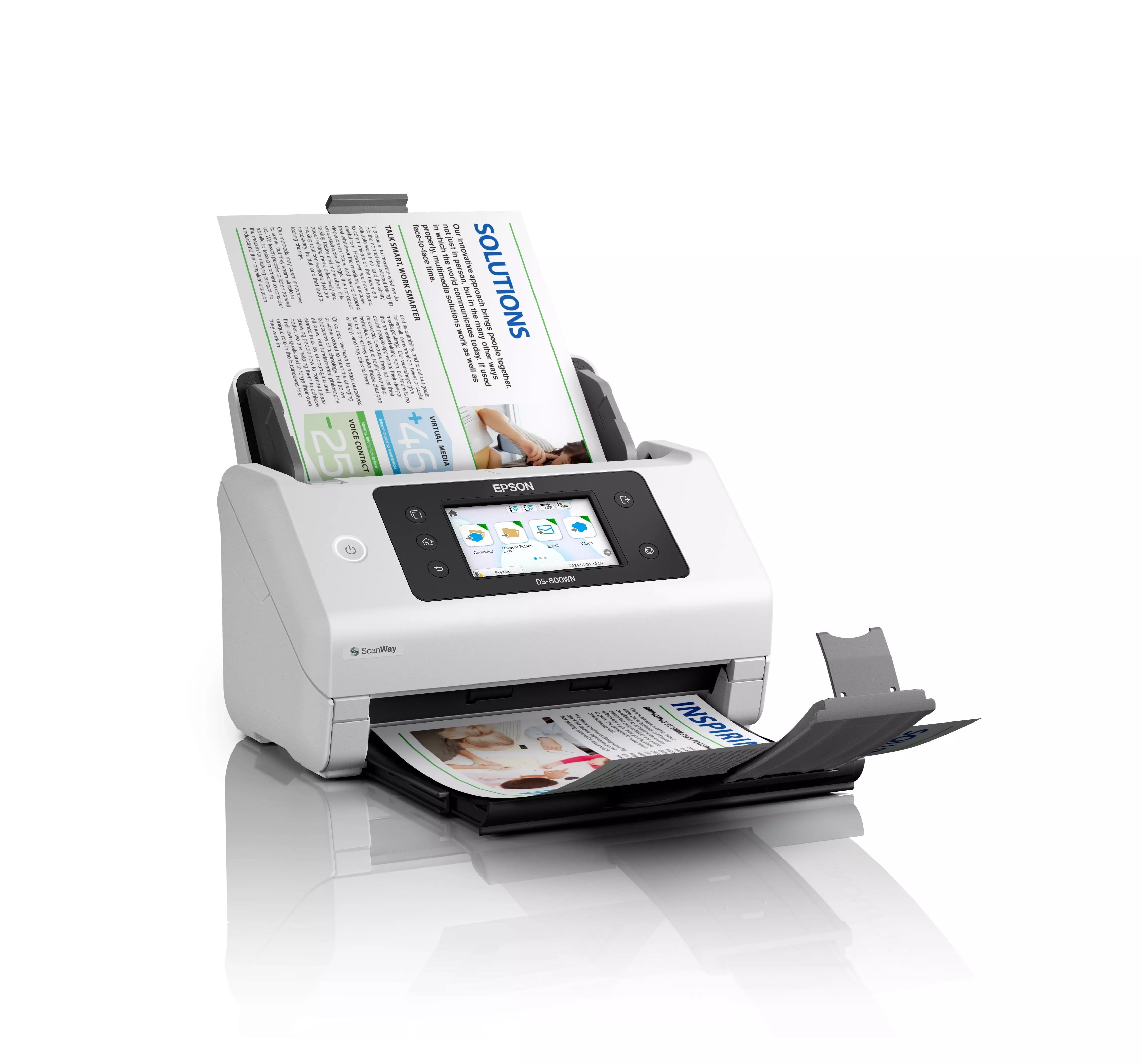 Model DS-800WN je vybaven webovou technologií Open Platform, která umožňuje bezproblémovou integraci se softwarem Epson nebo softwarovými řešeními třetích stran. To znamená, že podniky mohou přizpůsobit své systémy a integrovat skener se stávající infrastrukturou, firemními procesy a pracovními postupy.