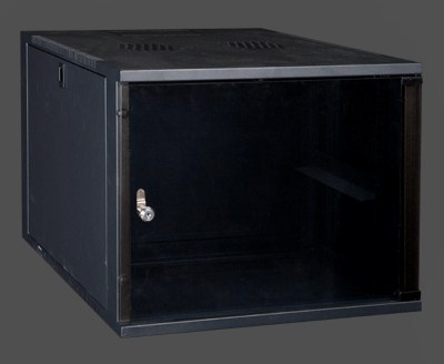 Rozvaděč má uzamykatelná dvířka z tvrzeného skla. Odnímatelné boční kryty.