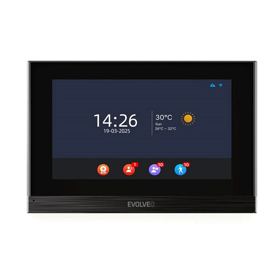 Interiérová jednotka není jen pasivní obrazovka. Dominantou systému je 7" barevný dotykový monitor, který funguje jako centrum komunikace u vstupu do domu a zároveň jako elegantní součást interiéru.