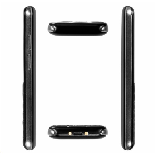 Barevný displej 2,8", 4G síť, SOS tlačítko s GPS lokalizací polohy, 2000 kontaktů, Dual Nano SIM, fotoaparát s bleskem, FM rádio s vestavěnou anténou, fotokontakty, Bluetooth, microSDHC, výkonná svítilna, nabíjecí kolébka, USB-C, Li-Ion baterie 1200 mAh