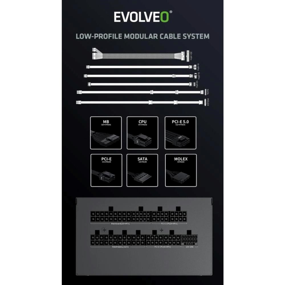 EVOLVEO G1000 zdroj 1000W, 80+ GOLD, ATX 3.1, aPFC, 140 mm ventilátor, záruka 3 roky, černý