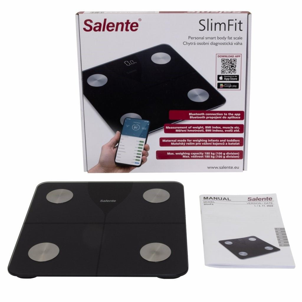 Salente SlimFit, osobní diagnostická fitness váha, Bluetooth, černá