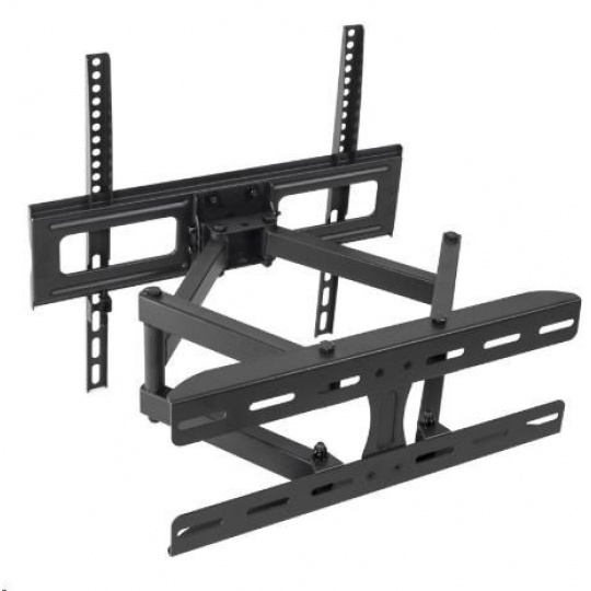 Levný ale kvalitní otočný, sklopný a délkově nastavitelný držák na televize 26-55" Držák robustní a velmi pevné konstrukce, který Vás mile překvapí svou nízkou cenou, která ale nebyla na úkor kvality. Držák má nosnost 30kg a podporuje VESA standardy 100x100 až 400x400. Je ideální pro bezpečné a spolehlivé zavěšení televizorů s úhlopříčkou 26-55" na zeď. Se zavěšenou televizí můžete otáčet na obě strany, naklápět ji nahoru nebo dole a měnit její vzdálenost od zdi - přisouvat, odsunovat, což je ideální v případě zapojování kabeláže nebo při utírání prachu. Kdykoliv máte přístup k zadní straně televize nebo k jejím bokům, což u sklopných nebo fixních držáků nelze a televizi musíte vždy sundat ze stěny. Držák má ocelovou konstrukci, která je robustní a bezpečná, barevné provedení je černé. V balení kromě samotného držáku naleznete i instalační sadu. Levný držák na televizi LCD LED plazmovou 3D nebo prohnutou, doporučená úhlopříčka 26-55 palců. Bezpečné zavěšení televize na stěnu, můžete s ní otáčet na obě strany, naklápět ji nahoru nebo dole a odsunovat nebo přisunovat ke zdi. Fiber Mounts DELTA760 / drzakyastolky.cz Technické údaje: nosnost 30kg podporuje VESA standardy 100x100 až 400x400 ideální pro zavěšení televizí a monitorů s úhlopříčkou 26-55" otáčení na obě strany +/- 75° náklon obrazovky nahoru nebo dole +/- 15° nastavení vzdálenosti od zdi 70-460mm pevná ocelová konstrukce spolehlivé a bezpečné zavěšení televizoru na zeď barva černá záruka 2 roky Držák Fiber Mounts DELTA760 podporuje VESA standardy: VESA 100x100 VESA 200x100 a 100x200 VESA 200x200 VESA 300x100 a 100x300 VESA 300x200 a 200x300 VESA 300x300 VESA 400x200 VESA 400x300 VESA 400x400 Nástěnný levný držák Fiber Mounts DELTA760 je ideální pro zavěšení všech typů a velikostí televizorů nebo monitorů, které mají hmotnost do 30kg a které podporují některý z výše uvedených VESA standardů..