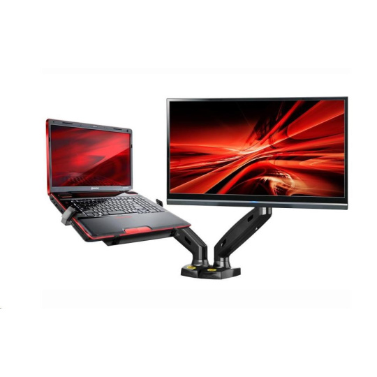 Fiber Mounts H3F160 držák notebooku a monitoru Sestava držáku na monitory NB F160 + držáku na notebook Ergosolid NBH3 za zvýhodněnou cenu, umožňuje dát na držák monitor 17" - 27" a notebook 10,1" - 17", otáčení do stran, naklápění, délkové a výškové polohování, nosnost 2x 9 kg Špičkový stolní držák do kanceláře, firmy nebo domácnosti pro zavěšení monitoru a notebooku. Držák umožňuje kompletní polohovatelnost jak monitoru tak i notebooku - otáčení do stran, náklon, délkové a výškové nastavení, korekci roviny. Ramena mají systém pro vedení kabeláže. Uchycení je možné na všechny typy stolů nebo desek o síle 10mm až 100mm, jsou možné 2 způsoby uchycení - na kraj stolové desky nebo kamkoliv do prostoru (ukotvení skrz stolovou desku - nutný otvor). Stolní držák pro uchycení notebooku (laptopu) a monitoru Fiber Mounts H3F160 je vynikající kvality, velmi pěkného designu a poskytujeme na něj záruku 5 let. Stolní držák na monitor a notebook do kanceláře, pracovny, firmy nebo domácnosti Fiber Mounts H3F160 Technické údaje: možné zatížení každého ramene 2kg až 9kg celková nosnost držáku 18kg podporuje VESA standardy 75x75 a 100x100 doporučená úhlopříčka monitoru 17" až 27" na notebooky a laptopy 10,1" až 17" výškové polohování 250mm otočný +180° / -180° náklon +35° / -50° funkce pivot - otočení monitoru do horizontální nebo vertikální polohy korekce roviny monitoru i notebooku vhodný pro uchycení všech notebooků a laptopů, které mají šířku 255-380 mm systém pro vedení kabeláže výborná kvalita krásný design záruka 5 let.