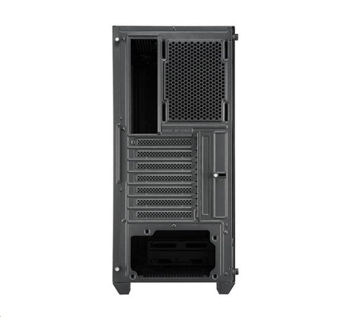 Provedení skříně:Midi Tower; Barva skříně:Černá; Počet pozic 3.5" (HDD):2; Počet pozic 2.5" (SSD):1; Vybavení PC skříně:Bez integrovaného zdroje, Přední Audio panel, Přední USB panel, Průhledná bočnice.... více