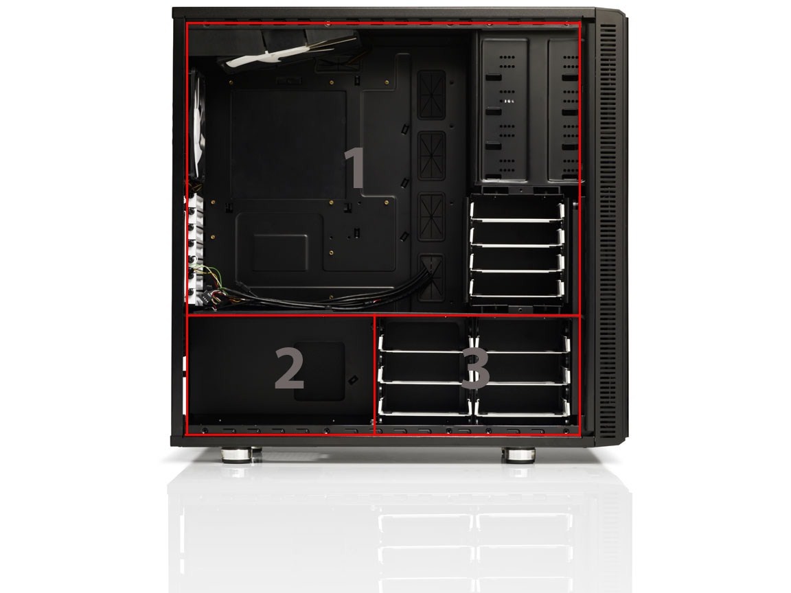 - PSU kompatibilita: ATX PSU až s 190 mm hloubkou při použití spodní polohy