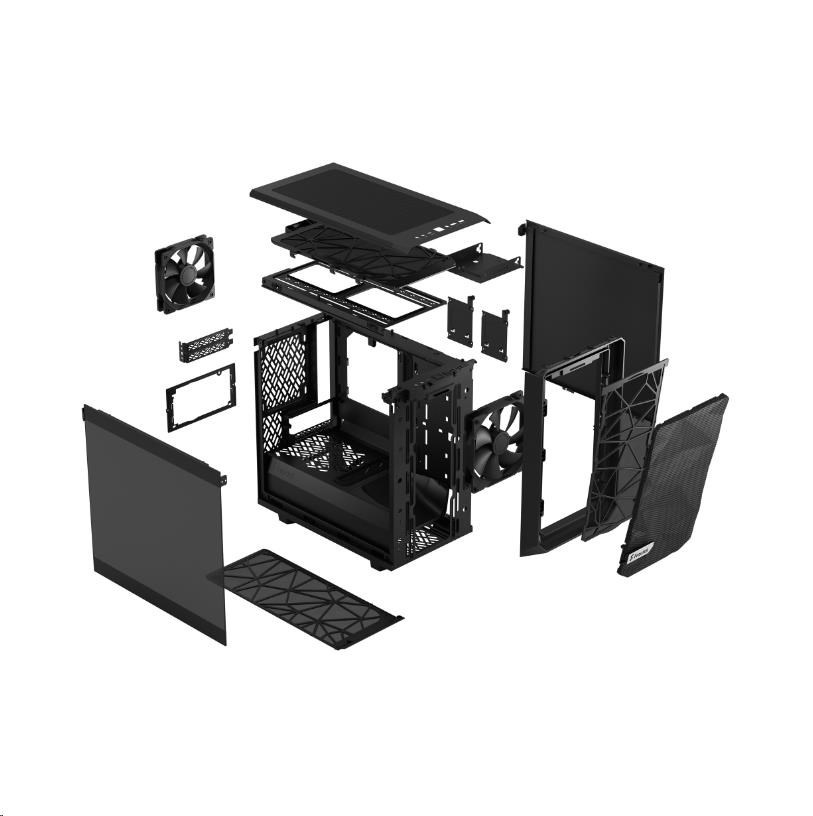 FRACTAL DESIGN skříň Meshify 2 Nano Black TG Dark Tint, USB 3.1 Type-C, 2x USB 3.0, bez zdroje, miniITX