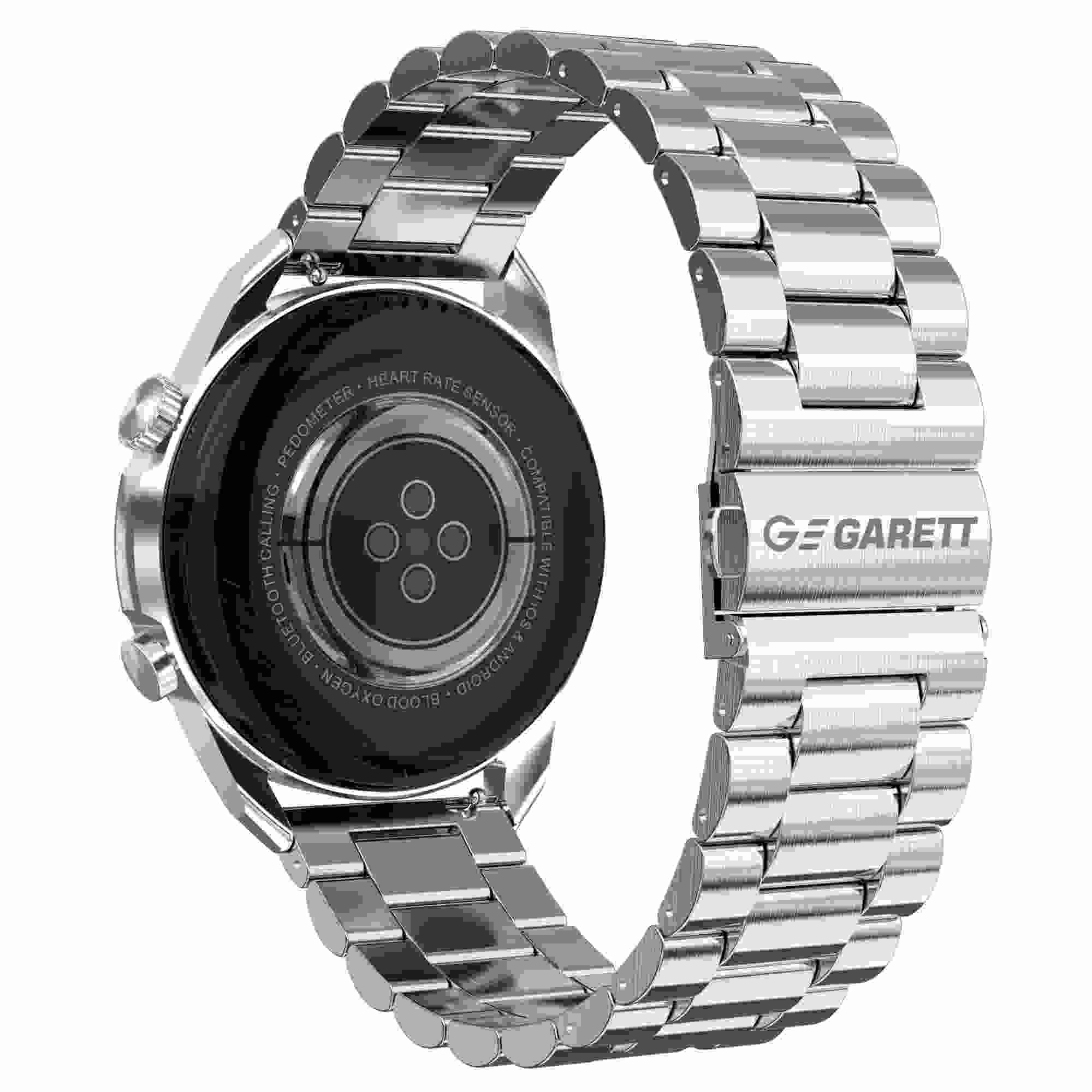 • Sada obsahuje: chytré hodinky Garett s ocelovým řemínkem, náhradní silikonový řemínek, nabíjecí kabel USB (bez zástrčky do zásuvky), příručku QSG