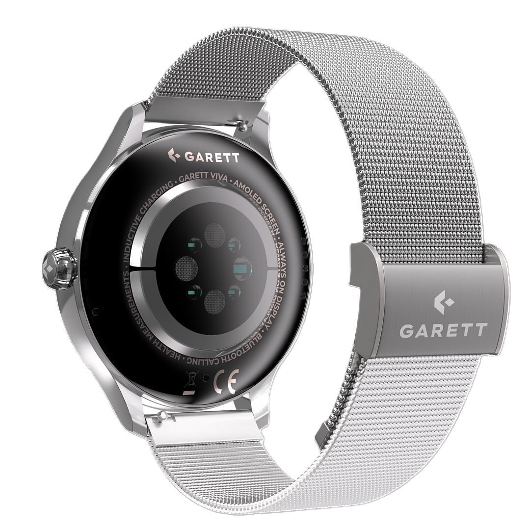 Smartwatch Garett Viva - to je technologi a nadčasová elegance v jednom. Jsou vybaveny AMOLED displejem, který zaručuje jasný a čitelný obraz za všech podmínek. Další výhodou je v sadě přiložený pohodlný silikonový pásek, který lze podle okolností měnit za kovový řemínek – díky nim budou chytré hodinky dobře vypadat jak během aktivního dne, tak i na večerním setkání. Také v zájmu zdraví nabízí více než 100 různých sportovních režimů, dále monitor srdečního tepu, pulzní oxymetr, monitor krevního tlaku, monitoring spánku a další zdravotní měření. Spolehlivá komunikace přes Bluetooth a notifikace z telefonu z nich navíc dělají dokonalého společníka pro každodenní život.