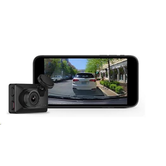 Ultra kompaktní záznamová kamera Garmin Dash Cam s hlasovým ovládáním, širokým úhlem záběru a integrovaným polarizátorem zachytí a uloží důležité detaily.