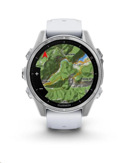 Garmin fenix® 8 – 43 mm, AMOLED, Silver / Whitestone se silikonovým řemínkem.