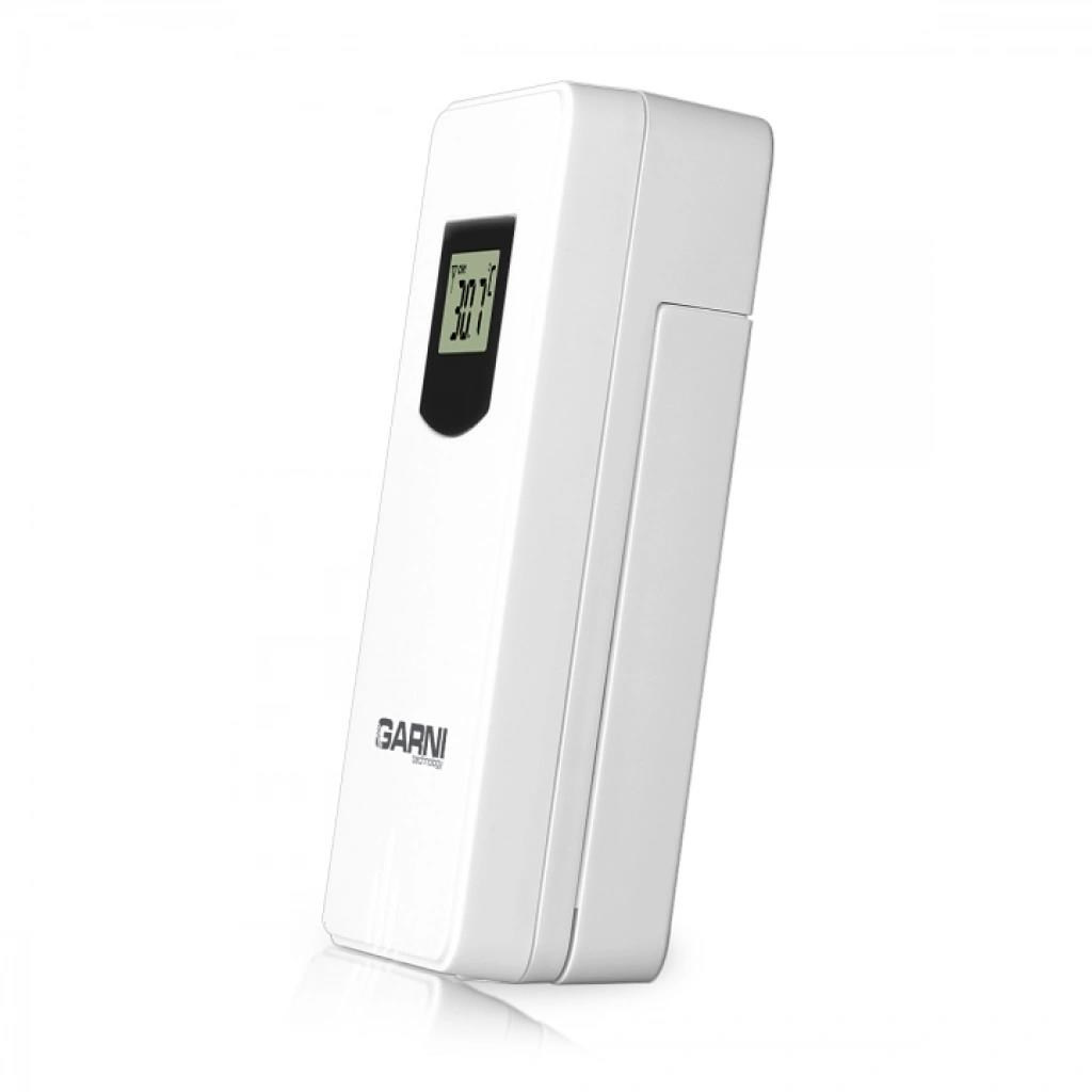Bezdrátové čidlo pro měření teploty, určeno pro meteorologickou stanici GARNI 365 Arcus vlhkosti odolné, krytí IPX4 (odolné proti stříkající vodě) displej o rozměrech 19 x 11 mm velikost číslic na displeji: teplota 6,5 mm měření teploty 3 kanály maximální RF výkon 10 dBm (10 mW) možnost postavení a zavěšení barva bílá.