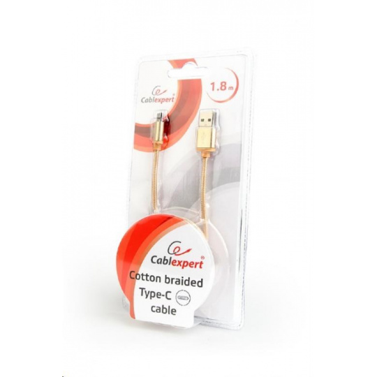 GEMBIRD Kabel USB na USB-C kabel (AM/CM), 1,8m, opletený, zlatý, blister