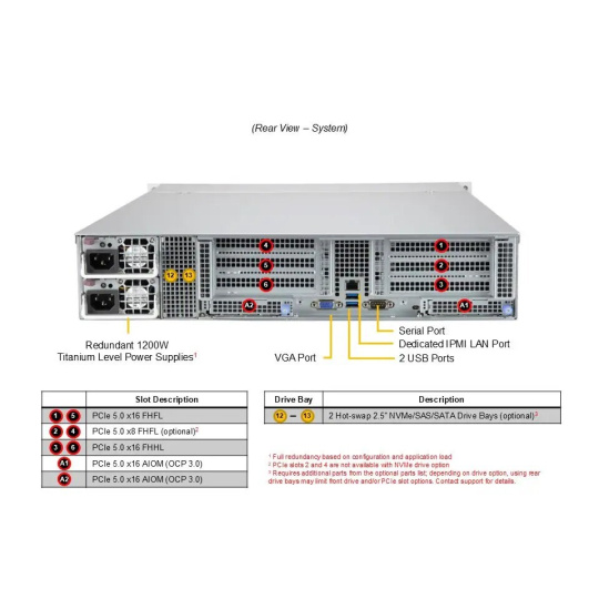 | Úložiště | 12x 3.5" hot-swap SATA/SAS bays + 2x M.2 NVMe |