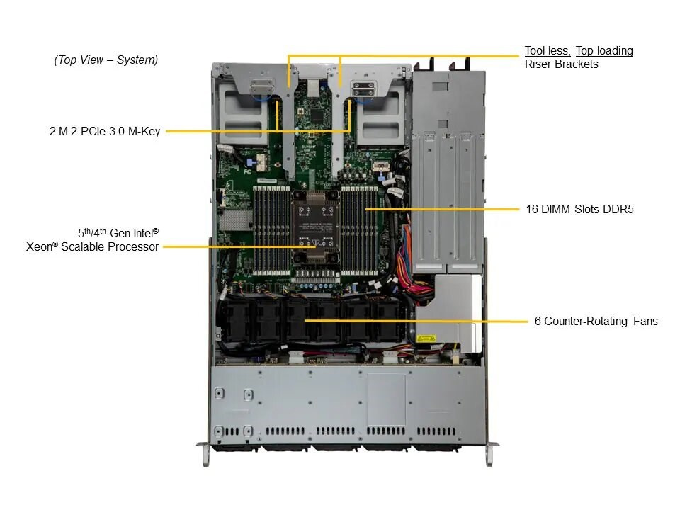 Supermicro SYS-111C-NR je výkonný 1U rackový server optimalizovaný pro databázové aplikace a podnikové výpočty. Tento systém využívá procesory Intel Xeon Scalable 4. generace a podporuje vysokorychlostní DDR5 paměť, což zajišťuje spolehlivý výkon a škálovatelnost pro širokou škálu pracovních zátěží.