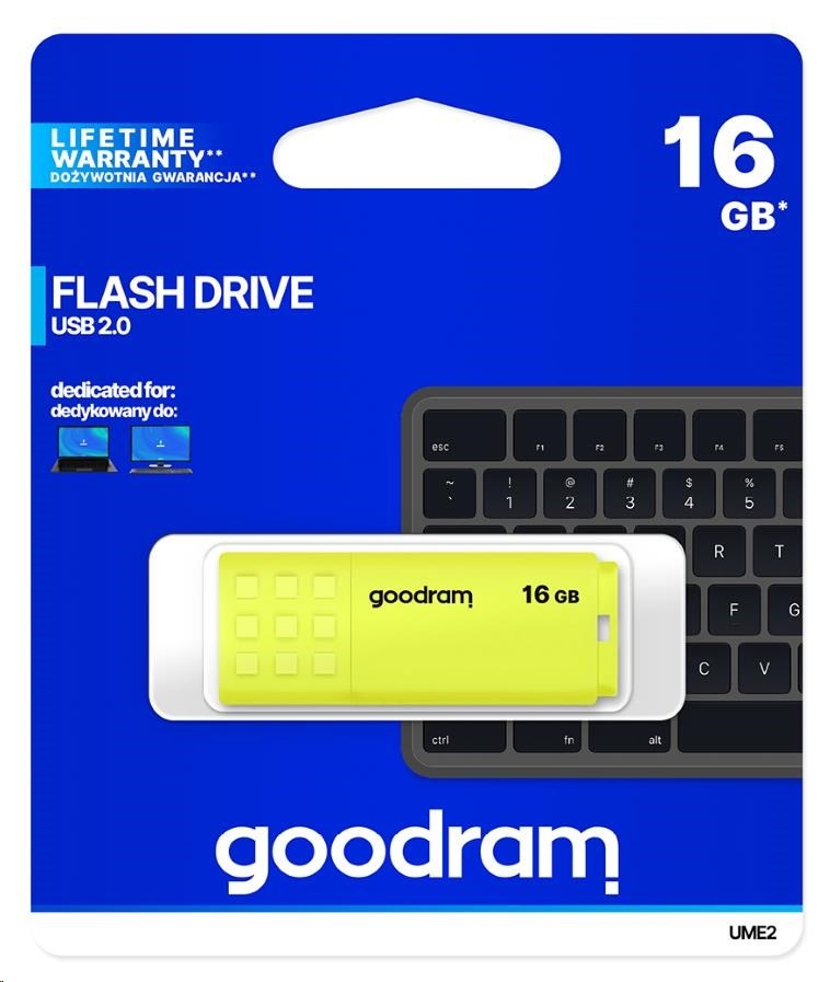 GOODRAM Flash Disk 16GB UME2, USB 2.0, žlutá